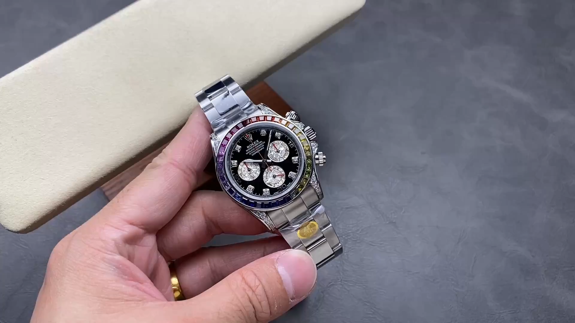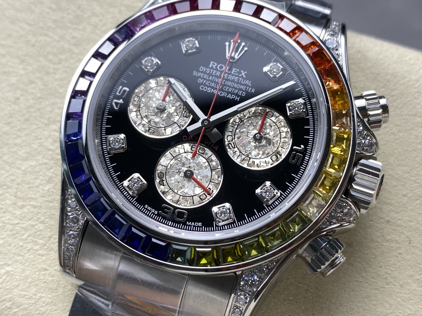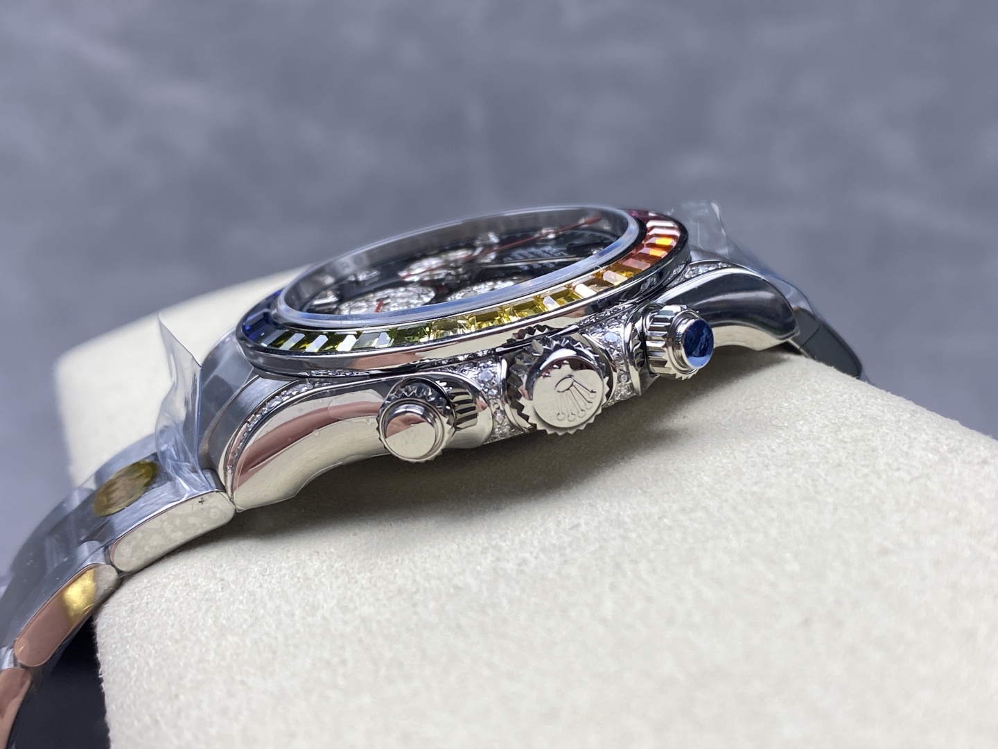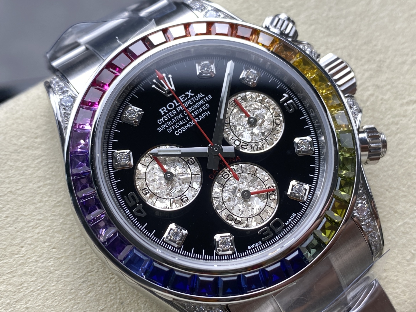 Rolex Cosmograph Daytona Reference 116595RBOW “Rainbow Daytona” (Gem-Set Rainbow Bezel)Silver 116599